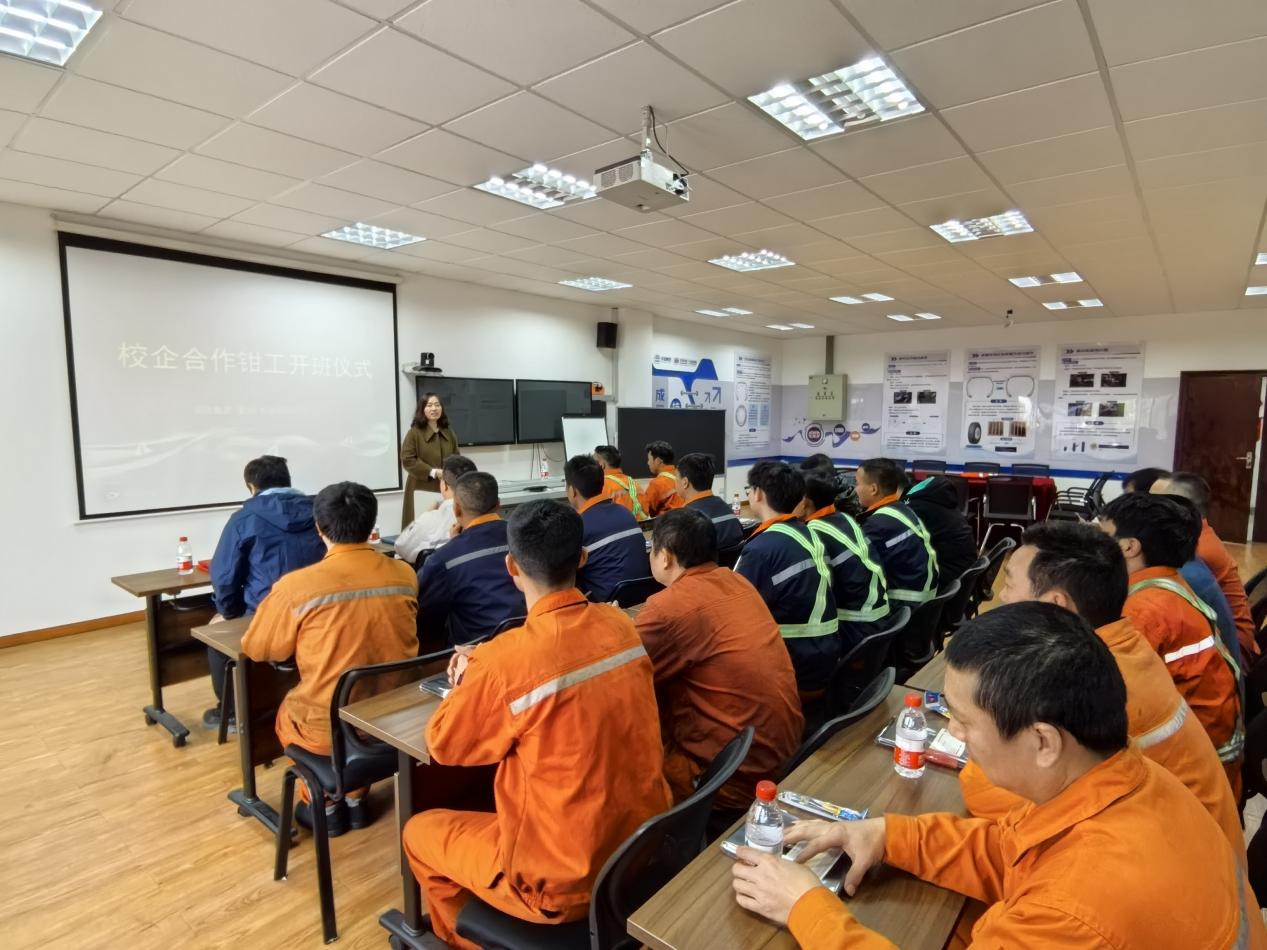 仪式分两项内容,校企合作签约和企业员工培训班开班。
