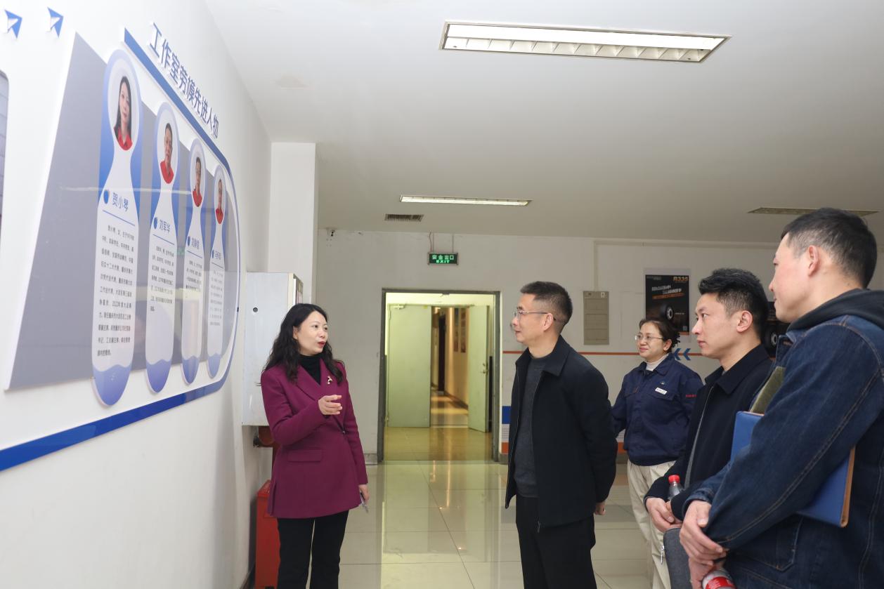 企业参观。职教中心一行人在贺小琴书记的带领下参观企业。对劳模工作室的运行、校企联合科研产出、校企合作渠道拓展等问题进行深入交流。