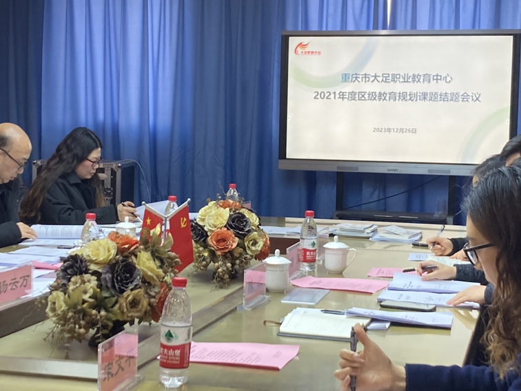 2023年12月26日在重庆市大足职业教育中心海棠校区励志楼二楼会议室分两个阶段分别举行了2023年区级教育规划课题开题会议和2021年区级教育规划课题结题会议。学校副校长陈波、科研处主任邓川以及各个课题组成员出席了会议。