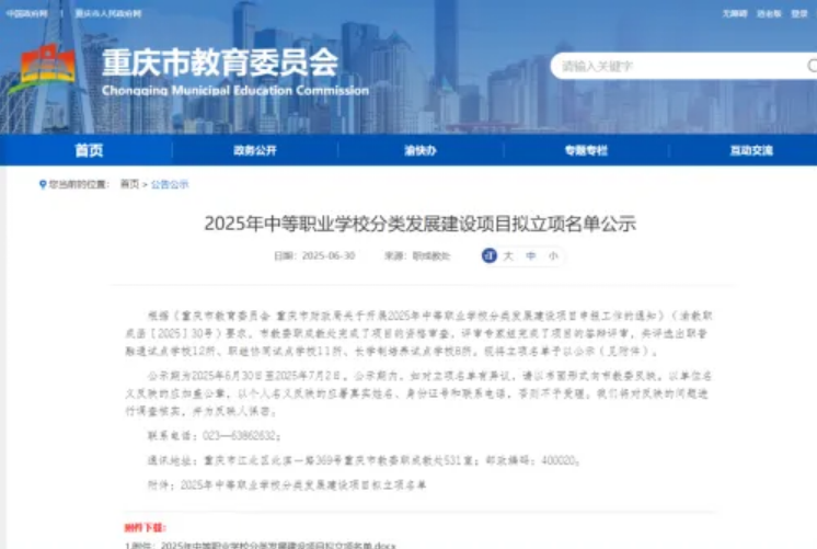 据悉,中职学校分类发展建设项目是重庆市教委以学校转型发展规划为前提,以深化办学模式、育人方式、管理体制、保障机制改革为驱动的重点项目。此次职继协同试点校的立项,旨在推动职业教育与继续教育资源整合、功能融合,构建“学历教育 + 技能培训 + 终身学习”的一体化育人体系,为区域产业升级和全民终身学习提供人才支撑与服务保障。
