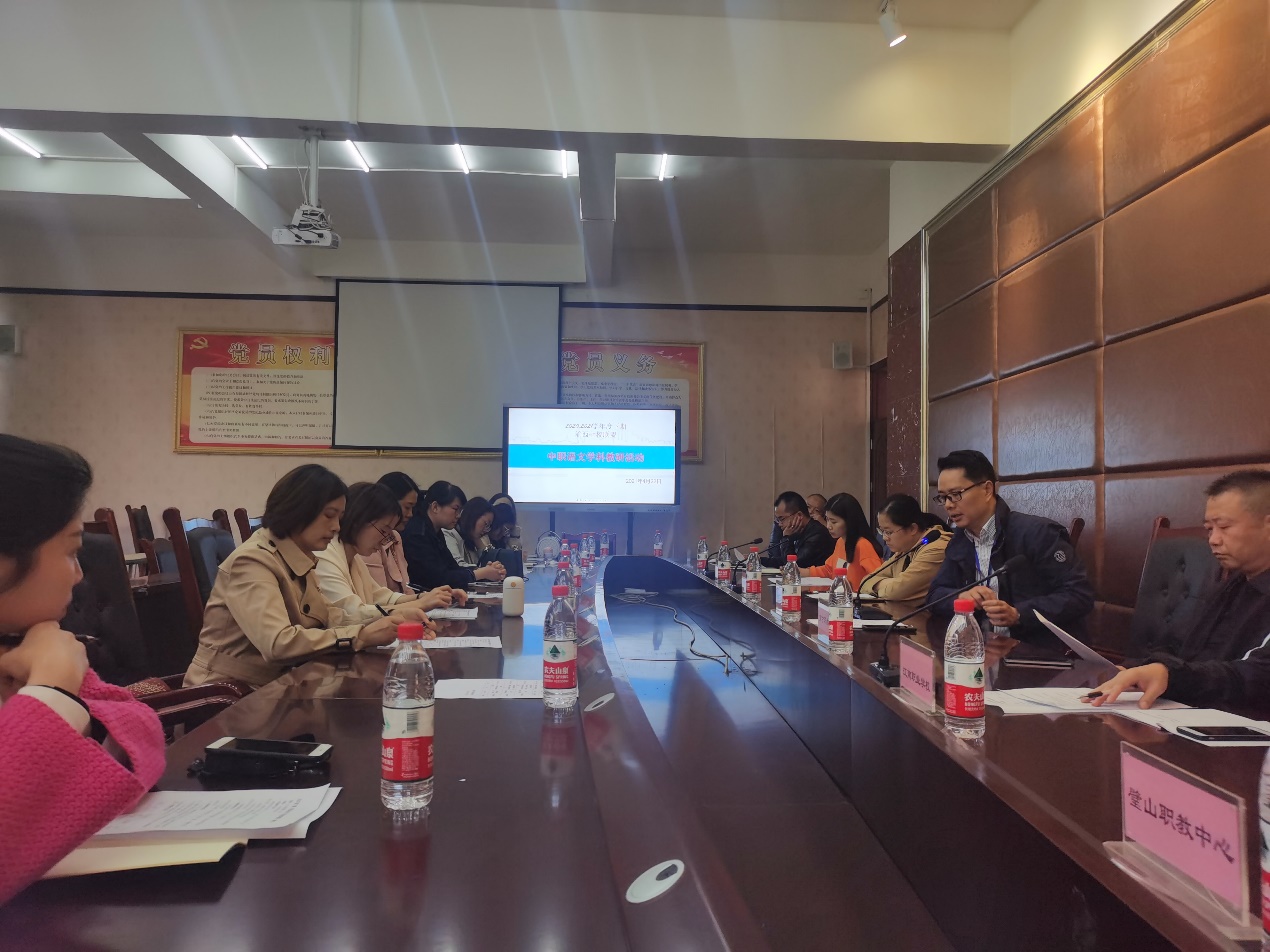 会议具体分为三个内容。首先,来自渝西七所中职学校的教务主任、语文教研组长和骨干教师集体研讨了本期2020级升学班和就业班考试范围及考试标准,研讨了2019级就业班开课情况及期末考试要求;其次,与会教师观看视频,观摩了大足职教中心杨夷老师上的一堂语文思政课《职业》;最后,老师们集体评课,对杨夷老师的语文思政课谈了自己的认识和看法,大家积极发言,现场气氛活跃,特别是育才职教中心和璧山职教中心的教师对语文思政课的建设提出了很好的意见和建议。