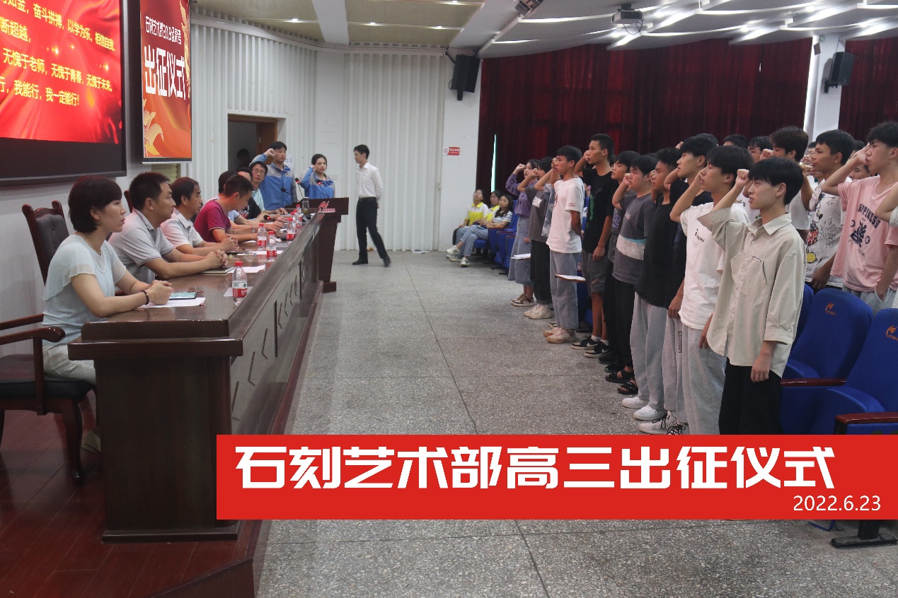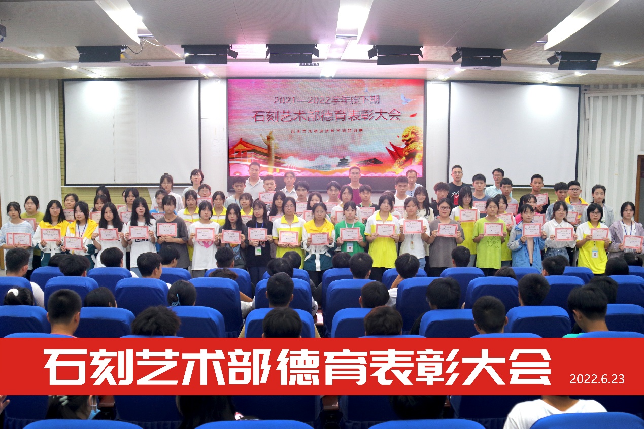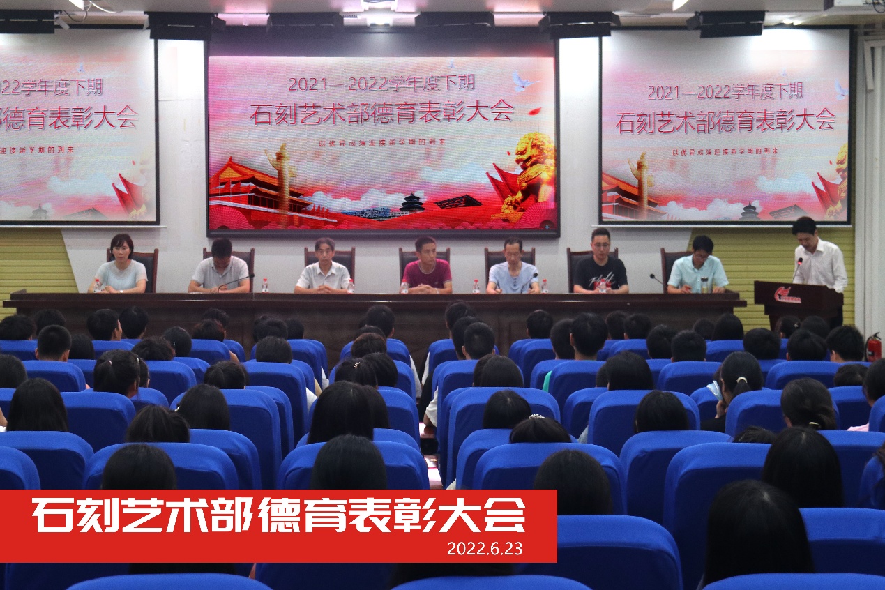 2022年6月23日,大足职教中心石刻部在学校第一学术报告厅召开期末德育表彰大会暨举行高三学生高考技考出征仪式,总结德育工作,壮行高考出征。