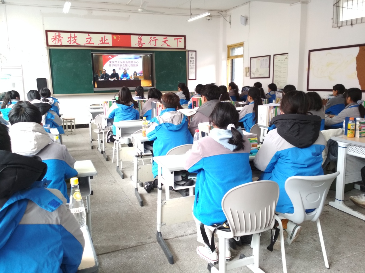 为保证学校开学各项工作的顺利进行,确保校园安全,进一步增强学生安全意识,规范学生行为习惯,形成健康的心理状态,3月1日上午职教中心召开了开学德育安全暨心理健康教育大会。大会由校长助理席海峰主持,学生处主任甘雨、安稳办副主任宋熹、学校心理咨询老师张琴参会主讲。大会通过钉钉平台视频直播,分直播主会场——第二学术报告厅,组织各班学生干部参会听讲;分会场——各班教室,班主任组织本班学生观看直播。