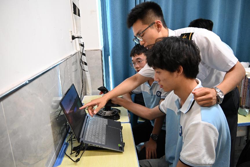 授课过程中,双方积极互动。职教中心学生踊跃发言,与大学生志愿者畅谈理想、分享学习心得,深入探讨语言能力在职业发展中的重要性。在实践环节,志愿者带领学生们体验模拟飞行,通过角色扮演让同学们感受飞行员的工作状态。这场别开生面的“云端课堂”在学生们心中播下了民航梦想的种子。