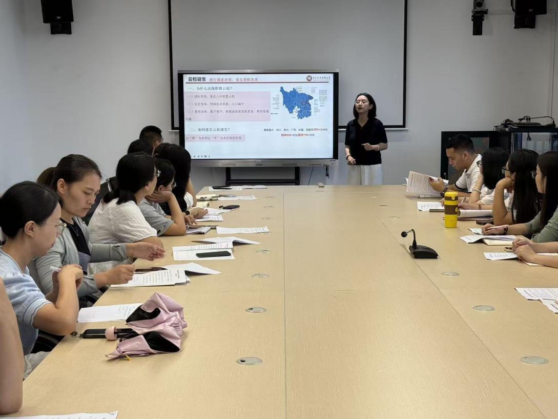 2025年9月8日,职教中心高考升学部在高新校区仁智楼三楼会议室成功召开了2025年秋季学期双师(线上教师、线下教师)课堂教师培训工作会议,高考升学部管理团队成员、智慧云校团队负责人出席会议,会议由高考升学部主任钟仕娟主持。本次会议聚焦课程核心素养,明确教学目标任务,统一思想认识行动,以期为提升教学质量,确保高考升学部的教学工作顺利进行走好第一步。
