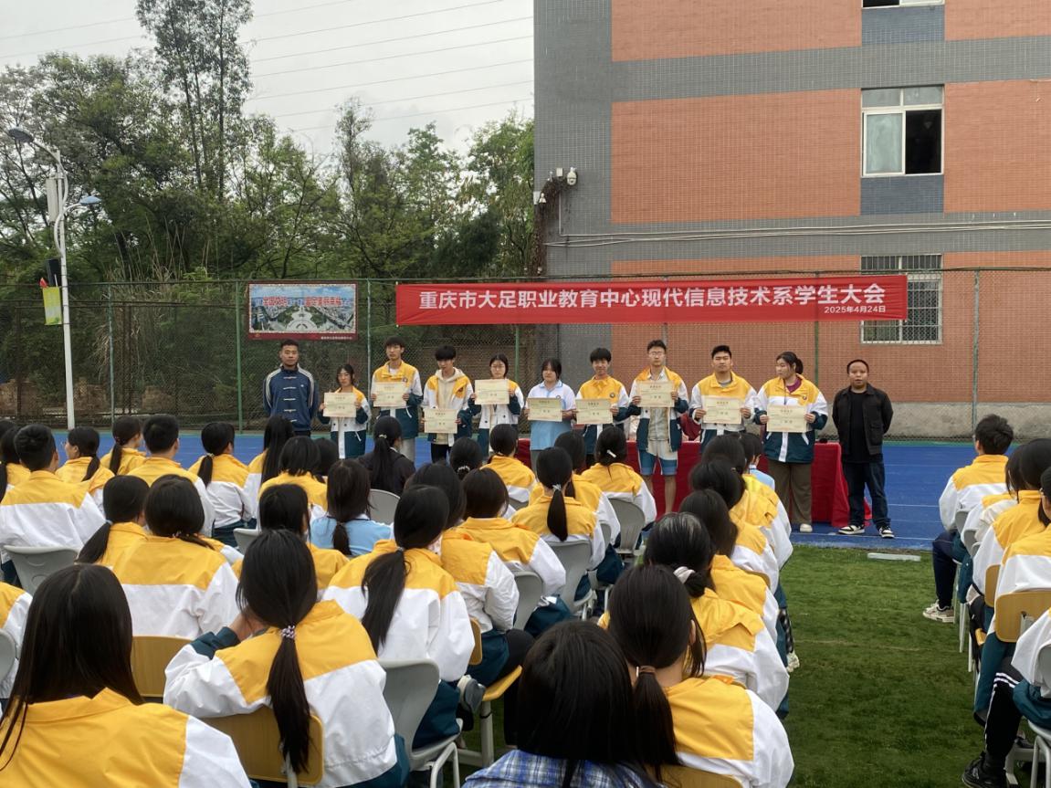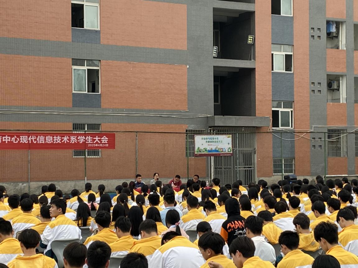 为进一步提升学生管理水平,推动学生全面发展,2025年4月24日利用下午课间操及第二节课时间职教中心现代信息技术系组织全体师生齐聚足球场,共同参与第三学月学生大会。本次大会以“表彰先进、强化德育、守护平安”为主题,通过总结经验、树立标杆、明确要求,为后续系部学生管理工作注入新动力。