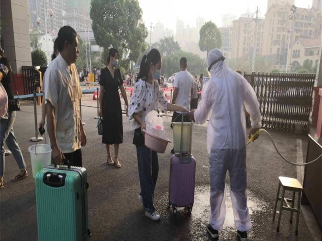 为了加强学校疫情防控管理,严把防疫第一道防线,学校进行分批次返校。8月28日是新生返校,8月31日老生返校。学校提前设置了三道醒目的返校通道,并劝导进出人员佩戴口罩,积极做好自我防护。我校保安对进校师生进行体温监测,学校设置了新冠肺炎疫情防控隔离区、新冠肺炎疫情防控隔离观察室,为做好发热病人的观察和隔离做好充分准备。进校时要求学生进行物品消毒和洗手。