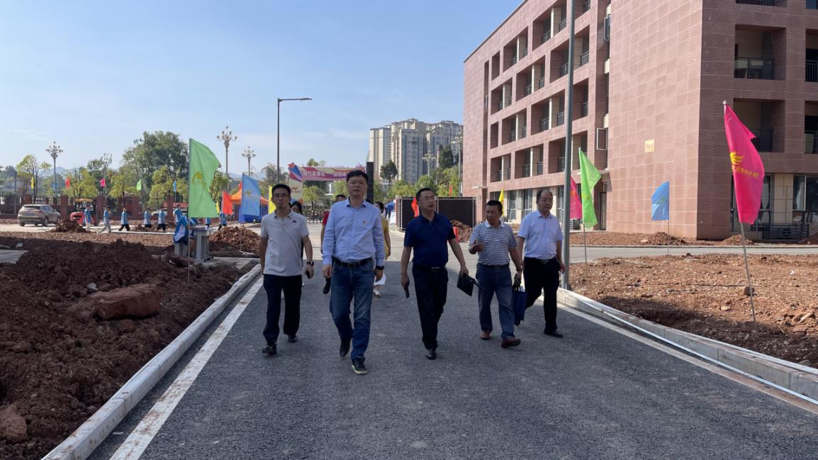 2022年9月5日,大足区教委副主任唐帮勇和区教委职成科科长邓国安一行到职教中心高新区分校检查开学工作。