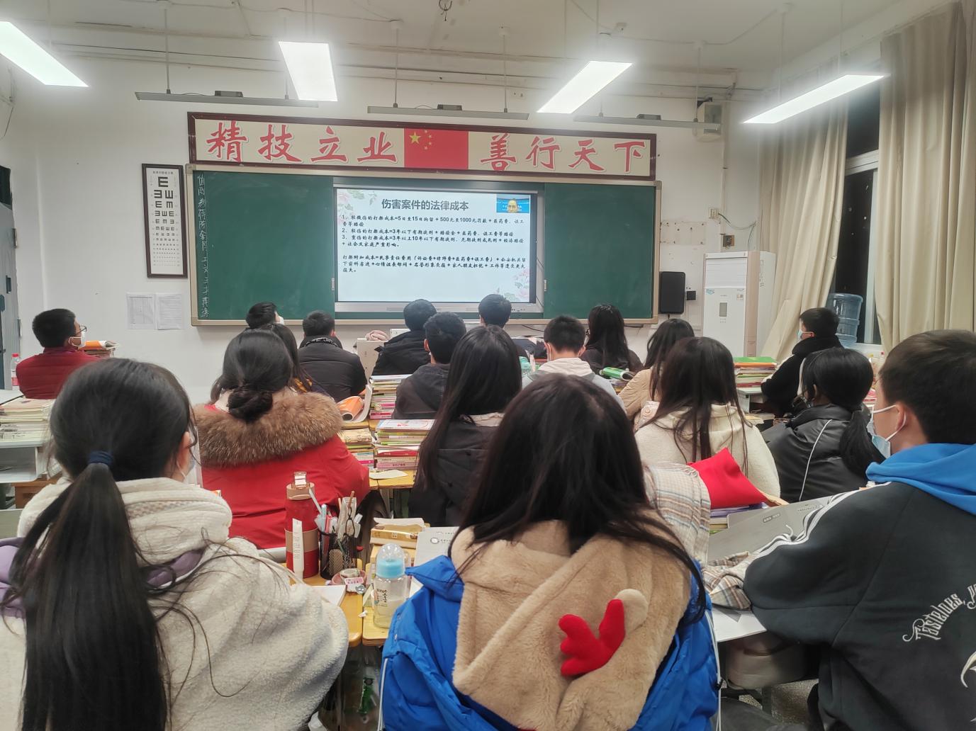 2021级19班学生杨虎兵表示,刘院长通过一个个真实的例子向我们讲述了什么是犯罪,不同年龄有不同的处罚,最重的就是刑法处罚;在听完刘院长的宣讲之后,深刻体会到了遵纪守法的重要性,让我了解到了作为一名中职生,我要时时刻刻遵纪守法,要懂法知法,要有法律意识才能营造和平良好的校园环境。