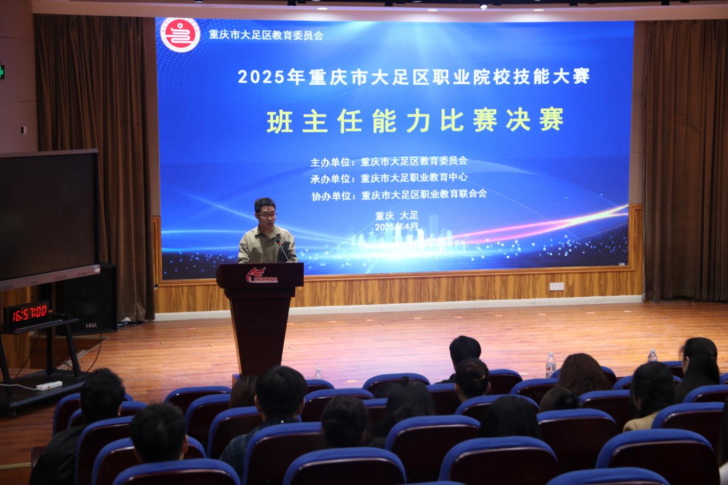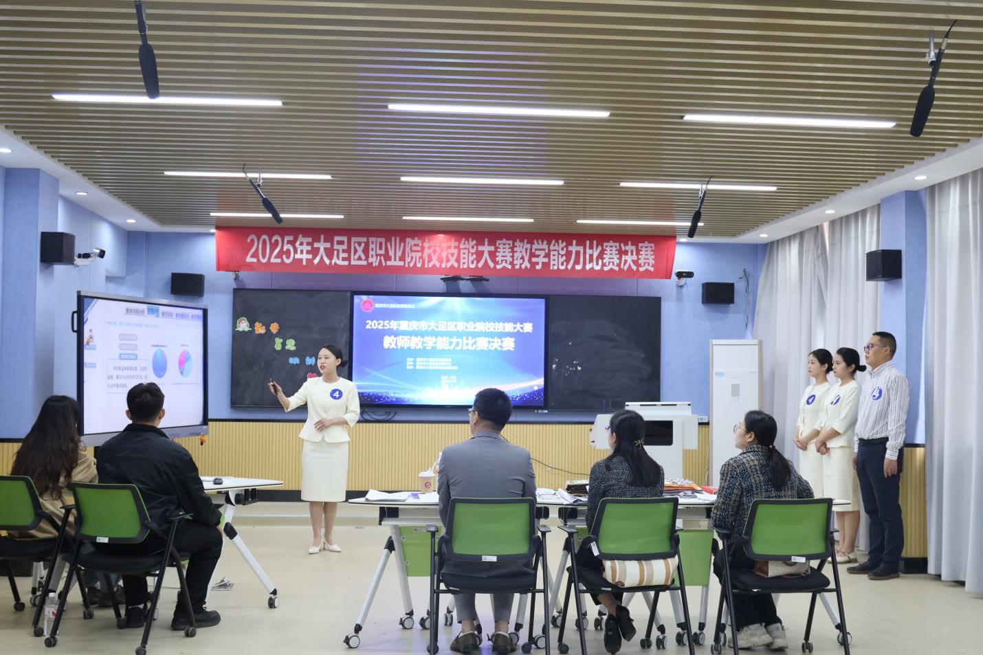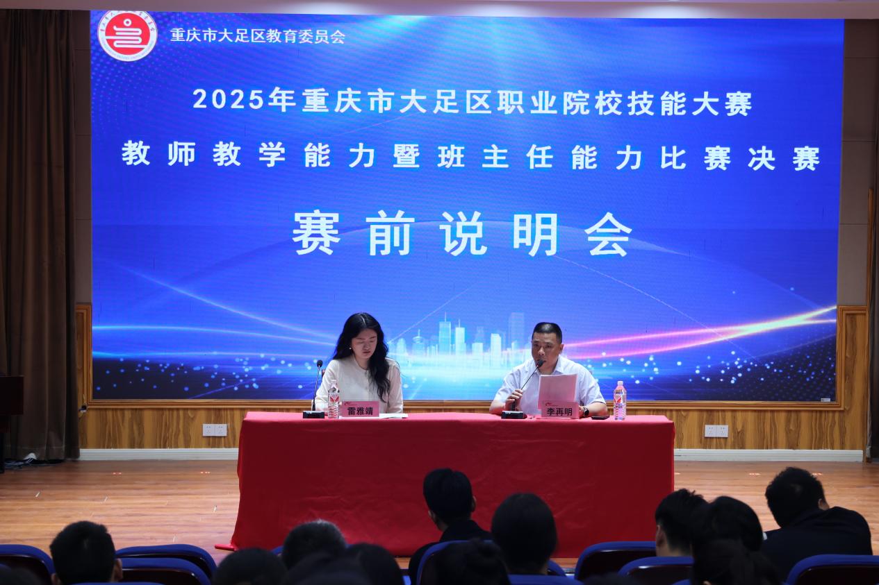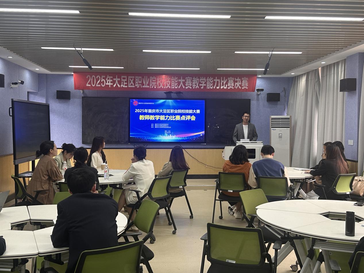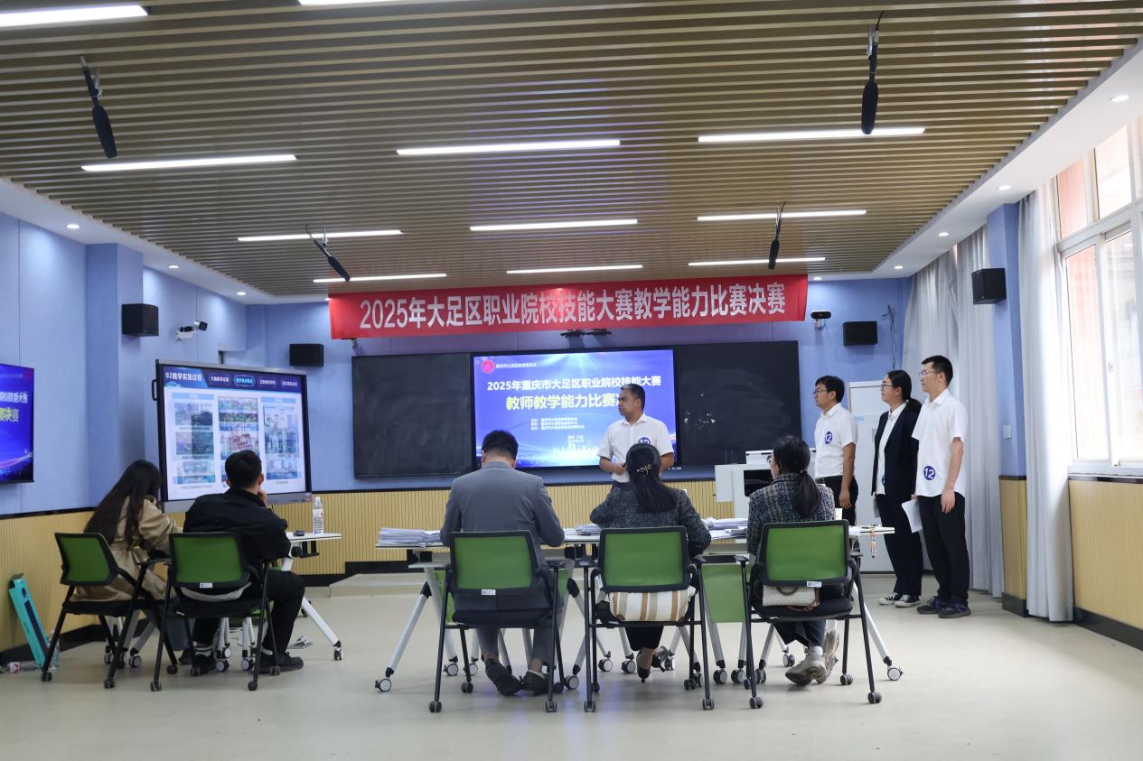 根据大足区职业院校技能大赛的既定安排,全区各职业院校经过严格的评审程序,教学能力比赛组筛选出12支队伍,班主任能力比赛组遴选出10名选手,共同参与大足区职业院校技能大赛教学能力比赛暨班主任能力比赛决赛。2025年4月24日,决赛在重庆市大足职业教育中心正式拉开帷幕。