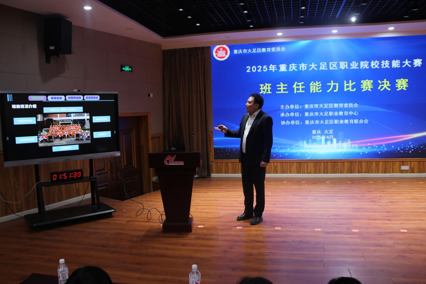 重庆健康职业学院、大足职教中心、重庆资源与环境保护职业学院、重庆电信职业学院、重庆科技职业学院等在足办学职业院校的参赛教师齐聚赛场。比赛中,教师们凭借扎实的专业功底与创新的教学理念,全方位展示了精湛的教育教学技艺;班主任们则以详实的班级管理方案、灵活的临场应变能力,充分彰显了卓越的育人智慧与管理才能。赛场上的激烈角逐,生动诠释了新时代职业院校教师的专业风采与育人担当。